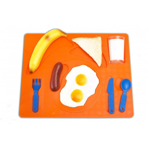 Ebben a készletben különböző élethű étel, ital és evőeszköz imitációval találkozhatnak a kicsik, melyek sokoldalúan, akár oktatási célra is használhatók. Azontúl, hogy a gyermekek megismerik az alapvető ételeket, megtanulhatják az evőeszközök használatát, és azt is, hogy milyen evőeszköznek hol a helye. Minden