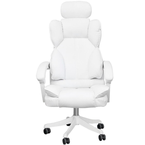 Lux főnöki forgószék – fehér A Lux főnöki forgószék a stílus, kényelem és funkcionalitás tökéletes ötvözete. Párnázott ülőfelülete, magas háttámlája és fejtámlája gondoskodik a teljes komfortérzetről, legyen szó munkáról vagy pihenésről. Dönthető és fixál