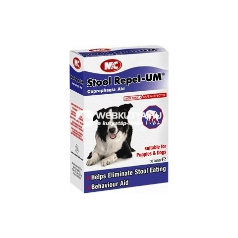 A koprofágia az a jelenség, amikor a kutyák megeszik saját ürüléküket. Néhány kutya gyakran teszi ezt, mely nem higiénikus rá nézve, és ez az állattartót is nyugtalanítja. A Mark & Chappel Stool Repel-UM tabletta kifejezetten a koprofág viselkedés ellen lett kifejlesztve. Amikor az összetevőket lenyeli az állat, azok aktívvá válnak a vékonybélben, és olyan székletet hoznak létre, mely az állat számára ehetetlen lesz.Használati utasítás: Kölyökkutyáknak és