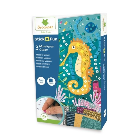 Stick & Fun mozaikkép készítő készlettel 3 meszeszép, óceáni állatokat ábrázoló képet dekorálhatsz ki! Tartalma: -3 kép (22 x 12 cm), -több mint 500 felragasztható mozaik lapocska és strasszkő -3 akasztó