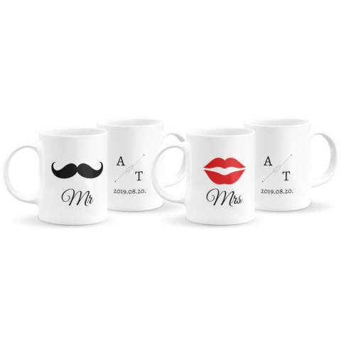 Mr és Mrs páros bögre dátummal bögrék, csészék árgrafikon