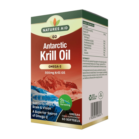 Az Natures Aid Krill Olaj 500 mg tartalmaz magas koncentrációjú foszfolipidet, ami könnyebb felszívódásáról ismert, valamint asztaxantint is, amely mélyvörös színt ad a krillnek. Mivel a krill a bolygó legelterjedtebb élőlénye, a termék a fenntarthatóságo