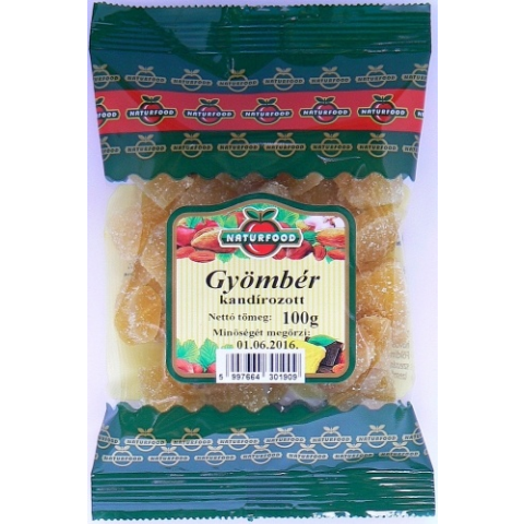 Összetevők: cukor, gyömbér, antioxidáns:kén-dioxid. Nettó tömeg: 100g Tárolás: fénytől védve, száraz, hűvös helyen.