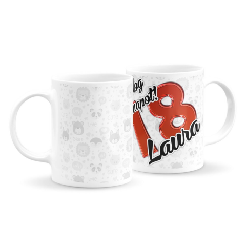 Női szülinapi bögre állatkás háttérrel (bármilyen névvel és számmal) bögrék, csészék árgrafikon