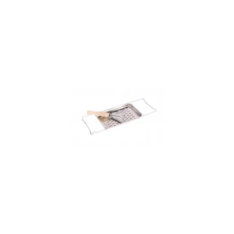 Nokedliszaggató lapát. Fémből készült, fa nyelű lapát. A termék hossza 16 cm, szélessége 9 cm és magassága 2 cm.