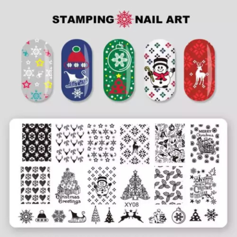 Tegyünk nyomdázó festéket a mintalemezre, húzzuk le a felesleget, vegyük fel a mintát a megtisztított szilikon stempli segítségével, majd nyomjuk a körömre. Használjunk fedőlakkot a minta védelme érdekében.