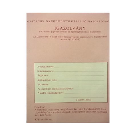 1 kép Nyomtatvány tb igazolvány pátria