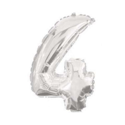 Óriás 4-es Silver szám Fólia lufi 85 cm A léggömb csak levegővel történő feltöltésre alkalmas, hegesztést igényel. A lufi tartó pálca + csésze külön megvásárolható áruházunkban. Anyaga: fólia