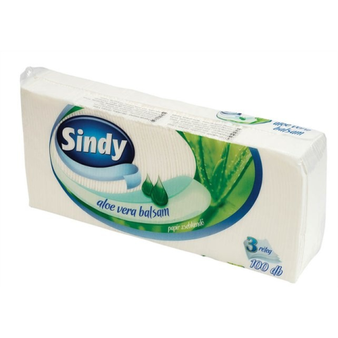 1 kép Papír zsebkendő, 3 rétegű, 100 db, "Sindy", aloe vera