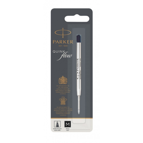 Magasan a legnagyobb darabszámban forgalmazott Parker betét. Erénye a nagy tartály,a precíz írócsúcs, a több mint 3000 méteres íráshossz. Minden Parker golyóstollhoz használható. Gyorsan száradó tinta. Vonalvastagsága Fine-vékony (0,5 mm). Írásszín: feket