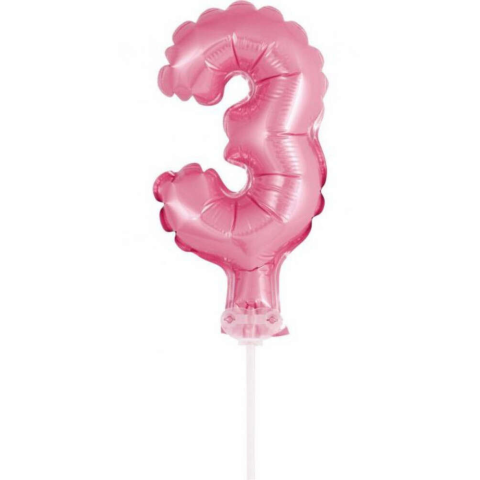 Rózsaszín 3-as Pink szám fólia lufi tortára 13 cm