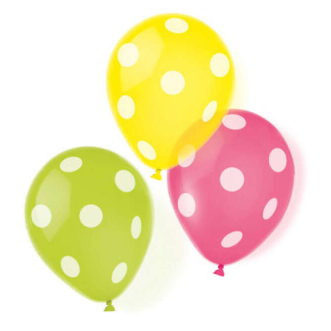 Pöttyös léggömb, lufi 6 db-os 9 inch (22,8 cm) Anyaga: latex/gumi Méret: 9 inch/22,8 cm A lufi tartó pálca + csésze külön megvásárolható áruházunkban (DPA9911929).