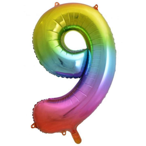 1 kép Rainbow, Szivárvány 9-es szám fólia lufi 85 cm