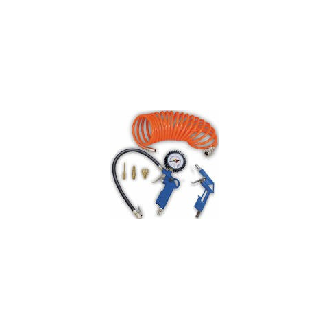 Alap kiegészítő szett, amely nem hiányozhat egyetlen kompresszorhoz sem. A fémötvözetből készült szerszámok gyorscsatlakozóval vannak ellátva. A szett tartalma: - Fúvópisztoly tisztításhoz vagy szárításhoz - Kerékfújó pisztoly manométerrel, védősapkával
