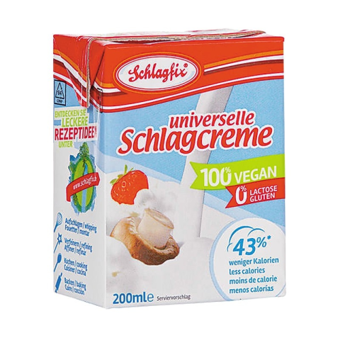 Fedezd fel a Schlagfix vegán habkrémet! Főzéshez, sütéshez, hab készítéshez és díszítéshez.A Schlagfix termékek alacsony kalóriatartalmúak és könnyen emészthetőek. Mind tiszta növényi készítmények, amelyek tökéletes alternatívát jelentenek az allergiások,