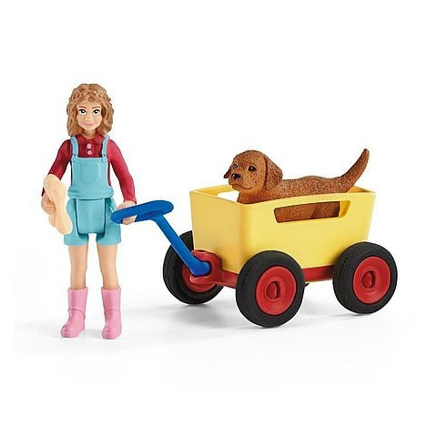 Schleich Kirándulás kézikocsival A Schleich Kirándulás kézikocsival Sarah-nak és Bello kutyusának nagyon jó kaland, együtt sétálnak virágos réteken, gabonamezők mellett a gyümölcsös felé A Schleich Kirándulás kézikocsival hosszú utazás, néha megpihenn