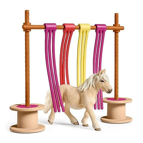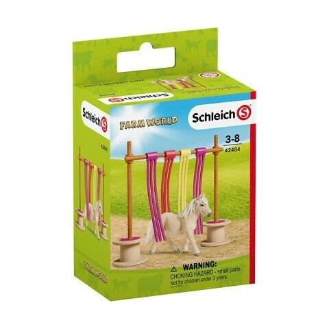 Schleich póni szalagfüggöny A Schleich póni szalagfüggöny felkészíti a pónit arra, hogy a versenyen ne ijedjen meg a lengő zászloktól és libegő szalagoktól A Schleich póni szalagfüggöny egy színes függőleges csíkokból álló szalagfüggöny, amivel gyakor