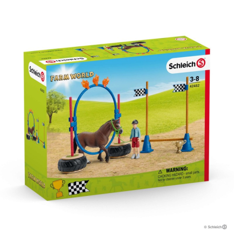 Schleich póni ügyességi futás A Schleich póni ügyességi futás edzésén résztvevő póni ha sikeresen teljesíti a kiképzést, részt vehet az ügyességi versenyen A Schleich póni ügyességi futás versenyszáma legalább olyan izgalmas mint a gyorsasági verseny,