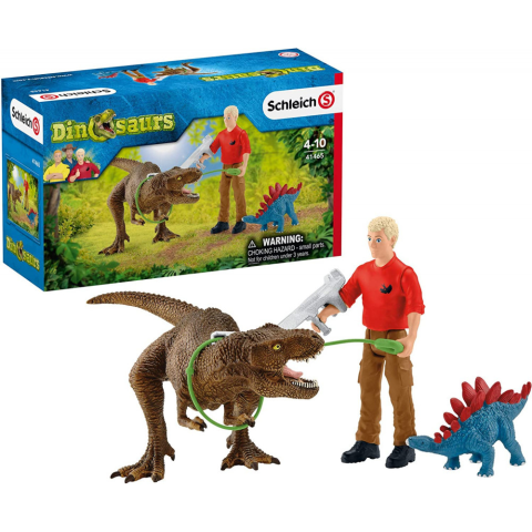 Schleich Tyrannosaurus Rex támadás A Schleich Tyrannosaurus Rex támadás alkalmával Flynn kutató megmenti Steggy-t a Stegosaurus dinot, egy kampós horgot akaszt a Tyrannosaurus Rex nyakára A Schleich Tyrannosaurus Rex támadásnak majdnem áldozatáúl eset