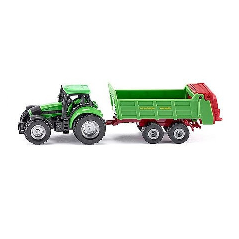 SIKU Deutz-Fahr traktor univerzális szóró utánfutóval 1:87 Trágyázd a földet a traktor szóró utánfutóval! A SIKU Deutz-Fahr traktor univerzális szóró utánfutóval egy zöld Deutz-Fahr traktor istállótrágya szóró utánfutóval A SIKU Deutz-Fahr traktor uni