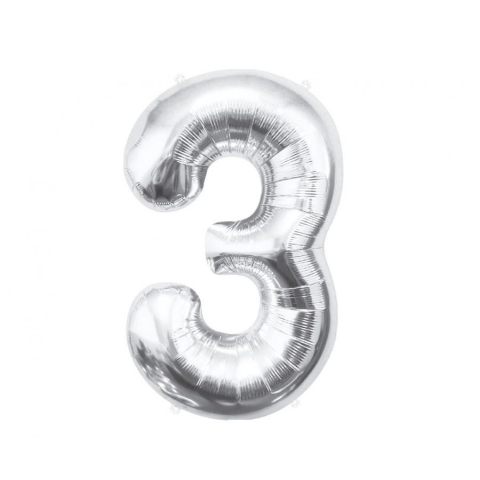 1 kép Silver, Ezüst 3-as szám fólia lufi 85 cm
