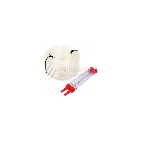 Slag vízmérték 1/2", 20 m. A tömlő PVC-ből készült, külső átmérője 12 mm, belső átmérője 10 mm. 2 db műanyag vízmértékkel rendelkezik a készlet, melyeket a műanyag csőhöz csatlakoztathat. A slagvízmérték ideális mérőeszköz építkezéseken, az egymástól távolabb lévő pontok vízszint beállításához.