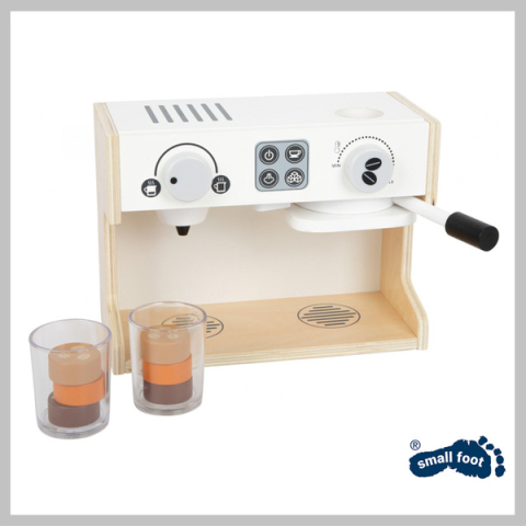 Small Foot gyerek kávéfőző 9 részes szett ZT-11792VESZÉLY! Nem alkalmas 3 év alatti gyermekek számára. Apró darabok. Fulladást okozhat.A mini baristák vigyázzanak! Ez az okos, professzionális fa kávéfőző garantáltan tökéletes kávét készít a gyermekkonyhában. Két kattogó hanggal ellátott forgatható gomb és egy mozgatható portafilter, amelyek aktiválva továbbítják a "kávét" az átlátszó kávésbögrébe, és ezzel valósághű játékélményt nyújtanak. K