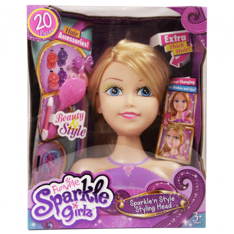 Sparkle Girlz fésülhető babafej - 24 cm Fésüld meg, sminkeld ki a Sparkle Girlz baba arcát! A Sparkle Girlz fésülhető babafej egy nagyobb méretű babafej, amin a frizurák készítését, és a sminkelést tudod gyakorolni A babafejet különböző sminkekkel, c