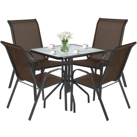 Stół kwadrat ISLAND 70cm + 4x Krzesło SOFIA brąz kerti bútor termékleírás