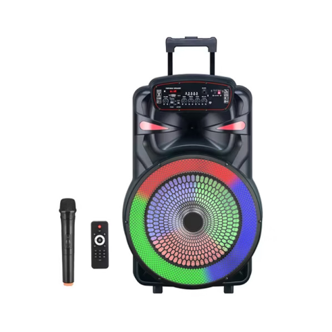 Super Bass Hordozható Bluetooth Hangszóró, 6000W TH-1501BA Super Bass TH-1501B egy nagy teljesítményű, színes LED világítással ellátott hordozható hangszóró, amely tökéletes választás partikhoz, rendezvényekhez vagy kültéri használatra.Modell: TH-1501BTeljesítmény: 6000W PMPOCsatlakozás: Bluetooth (BT), USB, MP3 lejátszásEnergiaellátás: Beépített akkumulátorKülönlegességek:Színes LED világítás a hangszóró körülHordozó fogantyú a könnyű szállításh