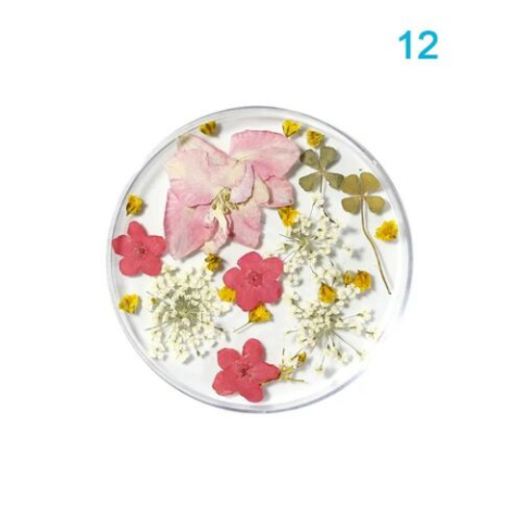 Szárított körömdíszítő virágok tégelyben. Kiváló kellék műkörömépítéshez, körömdíszítéshez.
