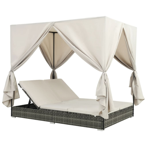 Teljes szürke polyrattan napozóágy függönyökkel termékleírás