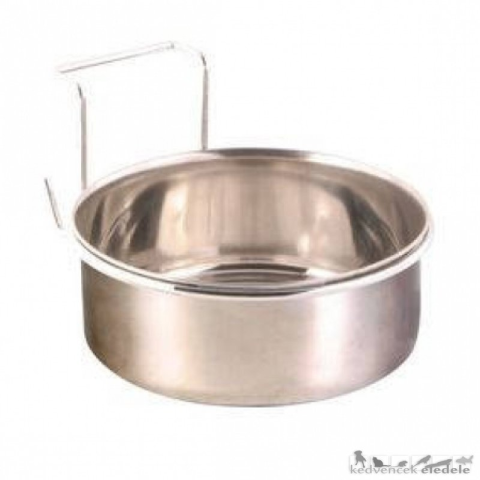 Rozsdamentes Acél Tál Tartóval Trixie kiváló minőségű, rozsdamentes acél tál papagájoknak és törpepapagájoknak. A tartó segítségével a ketrecre fel lehet akasztani. felaksztható acél tartóval Figyelem: mint minden termék használata, ezen terméké is fokozott odafigyelést igényel. Kérjük, rendszeresen ellenőrizze a termék állapotát, és rongálódás esetén, a sérülések elkerülése érdekében, cserélje ki. Méretek: 900 ml / ø 14 cmKapacitás: 900