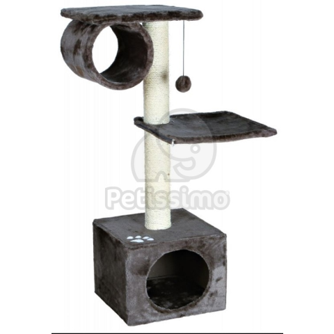 Jellemzők: - plüss borítás - szizálkender kaparófeleület - fekvőfelületekkel - búvóhellyel - bebújó hengerrel - játékkal Méretek: - alapterület: 36 x 36 cm - magasság: 106 cm - oszlop: ø 9 cm