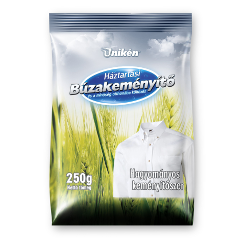 Háztartási búzakeményítő (Búzakeményítő 86-88%, por) Felhasználható: A búzakeményítő búzalisztből kivont keményítő, mely alkalmas technikai és élelmiszeripari felhasználásra. Alkalmazás és adagolás: Ruhakeményítő szer.3-4 evőkanálnyi (4-5dkg) keményítőt