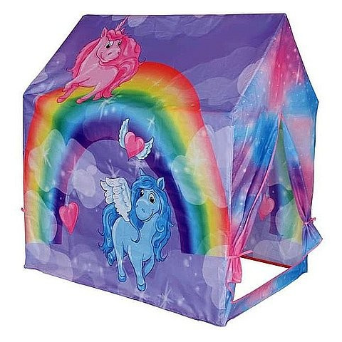 Unikornis játszóház 95 x 72 x 102 cm Varázslatos játszóház lányoknak! Az Unikornis játszóház egy lila színű házikó, az oldala Unikornisokkal és szivárvánnyal van díszítve Az Unikornis játszóház könnyen felállítható szövet játszóház, amit kültéren és b