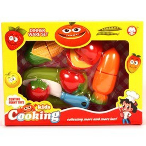 Vágható gyümölcsök és zöldségek Tanuld meg a gyümölcsök és zöldségek szeletelését! A Műanyag vágható gyümölcsök és zöldségek élelmiszer készletben egy almát, egy répát, kukoricát és epret találsz, amiket a vágódeszkán tudsz felaprítani a műanyag késse