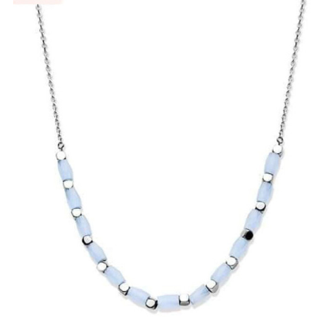 Victoria Ezüst színű kék gyöngyös nyaklánc Ezüst színű. Anyaga: rozsdamentes acél Méret: 45 cm