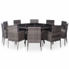 Teljes vidaXL 11-részes szürke polyrattan kültéri étkezőszett párnákkal termékleírás