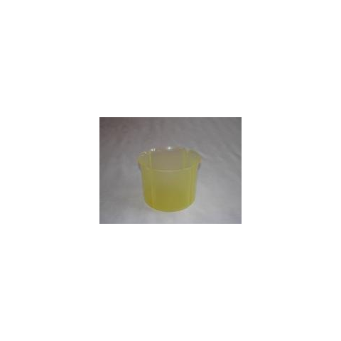 Sárga színű, műanyag, szirom formájú virágtartó kaspó. Az átmérője 130 mm.