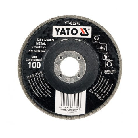 YATO Lamellás csiszoló 125/100 Epoxigyantából készült minőségi csiszolókorong fához és fémhez. - szemcseméret: P 100- csiszoló réteg: alumínium-oxid- méretek: 125 x 22,4 mm