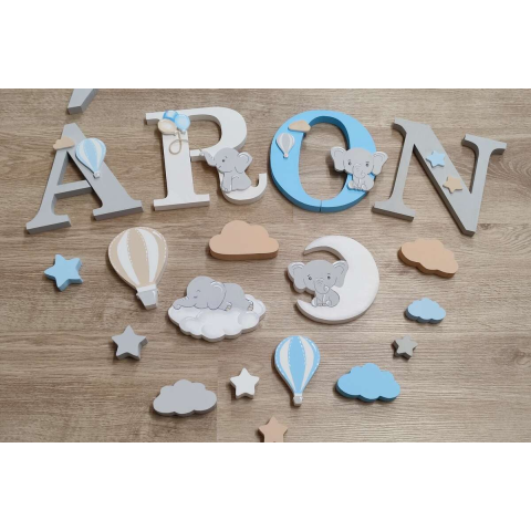 7 betűs Elefántos díszítésű dekorbetű szett, választható névvel, színnel