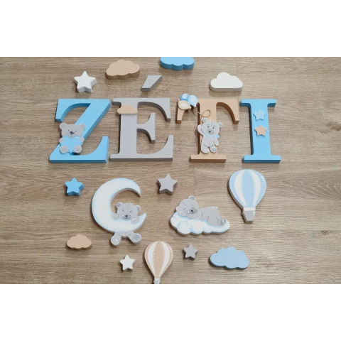 7 betűs Macis díszítésű dekorbetű szett, választható névvel, színnel gyerekszoba dekoráció 1 kép