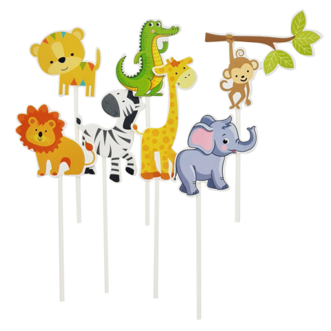 Tedd igazán különlegessé az otthon készített születésnapi tortákat és süteményeket ezzel a 7 darabos, állatos papír torta dekorációs szettel. A beszúrók aranyos állatokat ábrázolnak – oroszlán, tigris, zebra, krokodil, zsiráf, elefánt és majom - melyek t