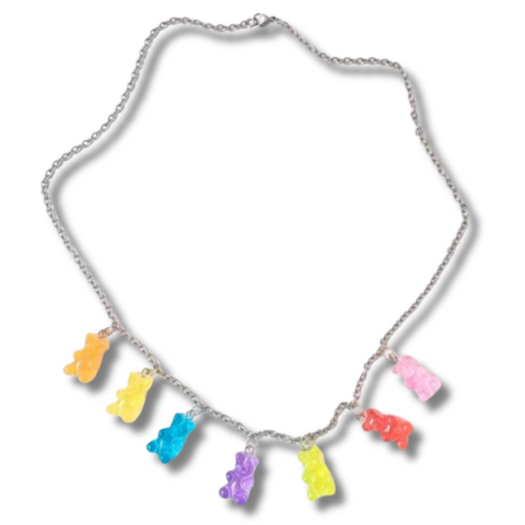 Színes gumimacis nyaklánc 7 vidám medállal, tökéletes ajándék gyerekeknek és felnőtteknek. Ékszer, amely feldobja a mindennapokat