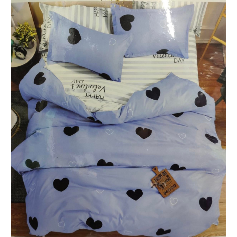 7 részes Ágynemű Garnitúra- Világoskék-Fekete Szíves lakástextília termékleírás