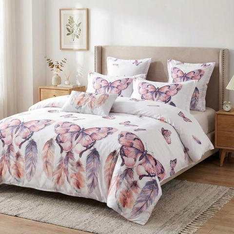 7 részes ágyneműhuzat szett H04Általános jellemzőkAnyag: puha tapintású, bőrbarát mikroszálas textilMinta: Fehér alap, rózsaszín, pillangóKivitel: kétoldalas mintázatA szett tartalma (7 részes)2 darab párnahuzat2 darab nagypárnahuzat1 darab paplanhuzat1 darab lepedő1 darab dekor párnahuzatJellemzők és előnyökKönnyű, jól szellőző anyag a kényelmes alváshozSzíntartó nyomás, többszöri mosás után is megőrzi mintájátGyűrődésre kevésbé hajlamos, könnyen
