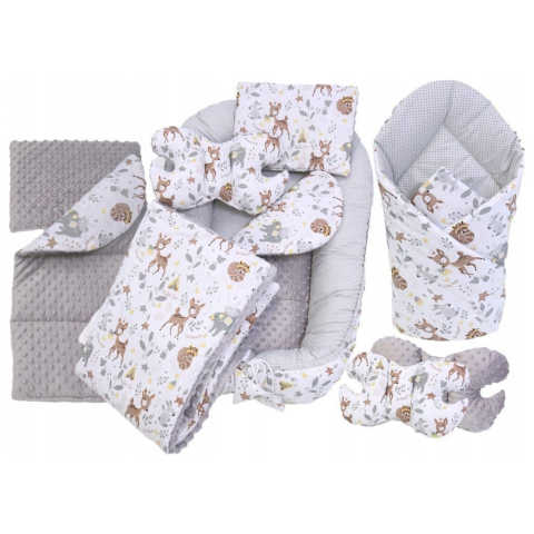 7 részes babafészek szett - erdei állatok és teepee Hamarosan új családtaggal bővül az otthona vagy szép és praktikus ajándékot keres egy várandós anyukának? Akkor vessen egy pillantást erre a csodálatos 7 részes, erdei állatokkal díszített babafészek szettre , amely mindent tartalmaz a baba maximális kényelme érdekében.Az erdei állatos motívum és a semleges színek minden szobába jól illeszkednek. A fészek, a pólya, a párna, a párnák és a paplan kéz