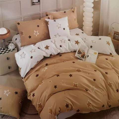 Teljes 7 részes csillagos ágyneműhuzat, Barna-fehér AB107-1 termékleírás