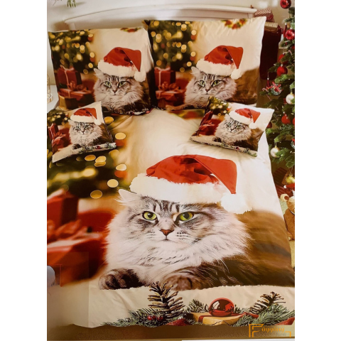 1 kép 7 részes karácsonyi ágynemű szett - Mikulás macska -3D
